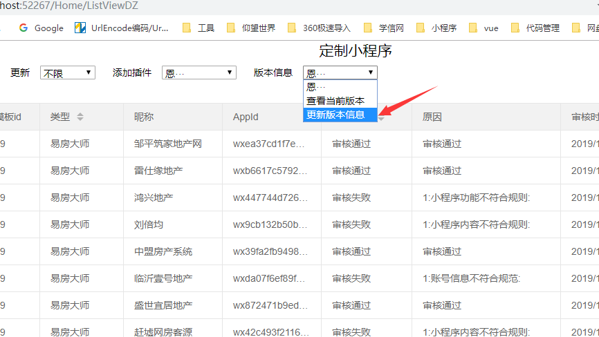 将提交到草稿箱的小程序添加到模板库后,在后台更新最新的模板id和版本号信息。